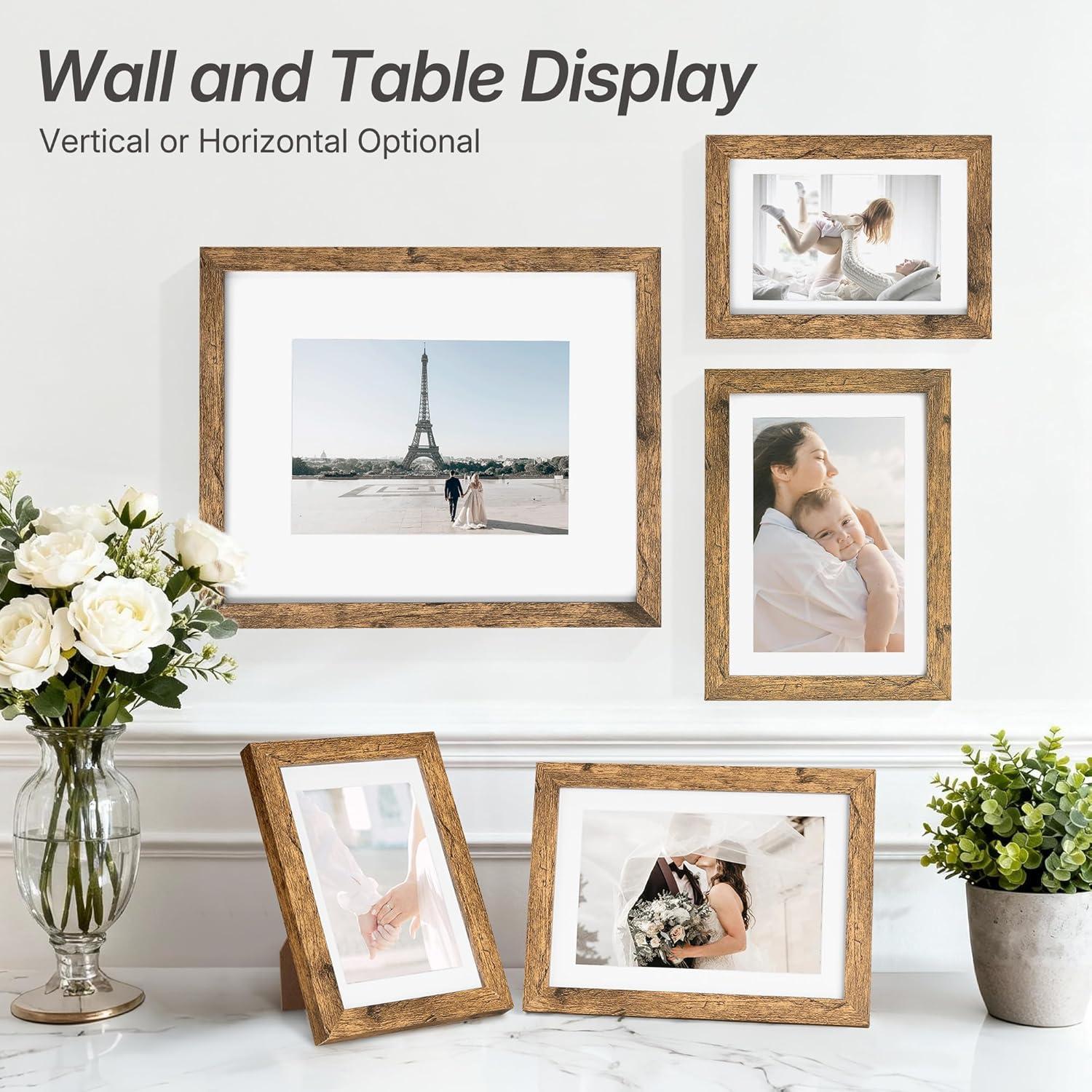 Distressed White 5x7 Picture Frame, Picture Frames 5x7 Wooden Picture Frames with Real Glass, Rustic 5 x 7 Photo Frame for Wall or Tabletop, Display Picture 4x6 with Mat or 5x 7 Without Mat (5 Pack)(Rustic Brown)