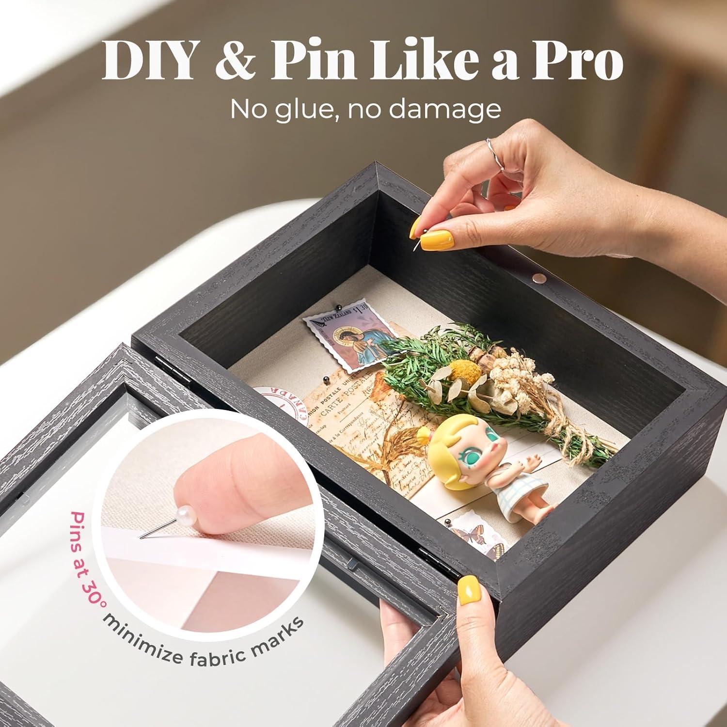 Elegant Linen Display Board: Shadowbox picture frame foam backing board covered in neutral linen fabric & pearl-tipped pins, seamlessly complements your photos, dried flowers, military medals, heirloom jewelry, or travel mementos, and artwork, to create a delightful display