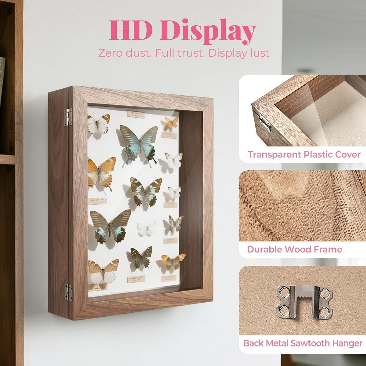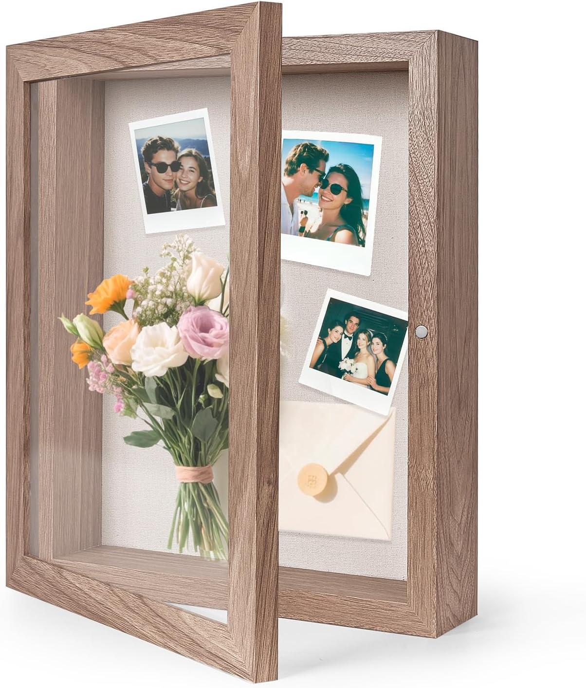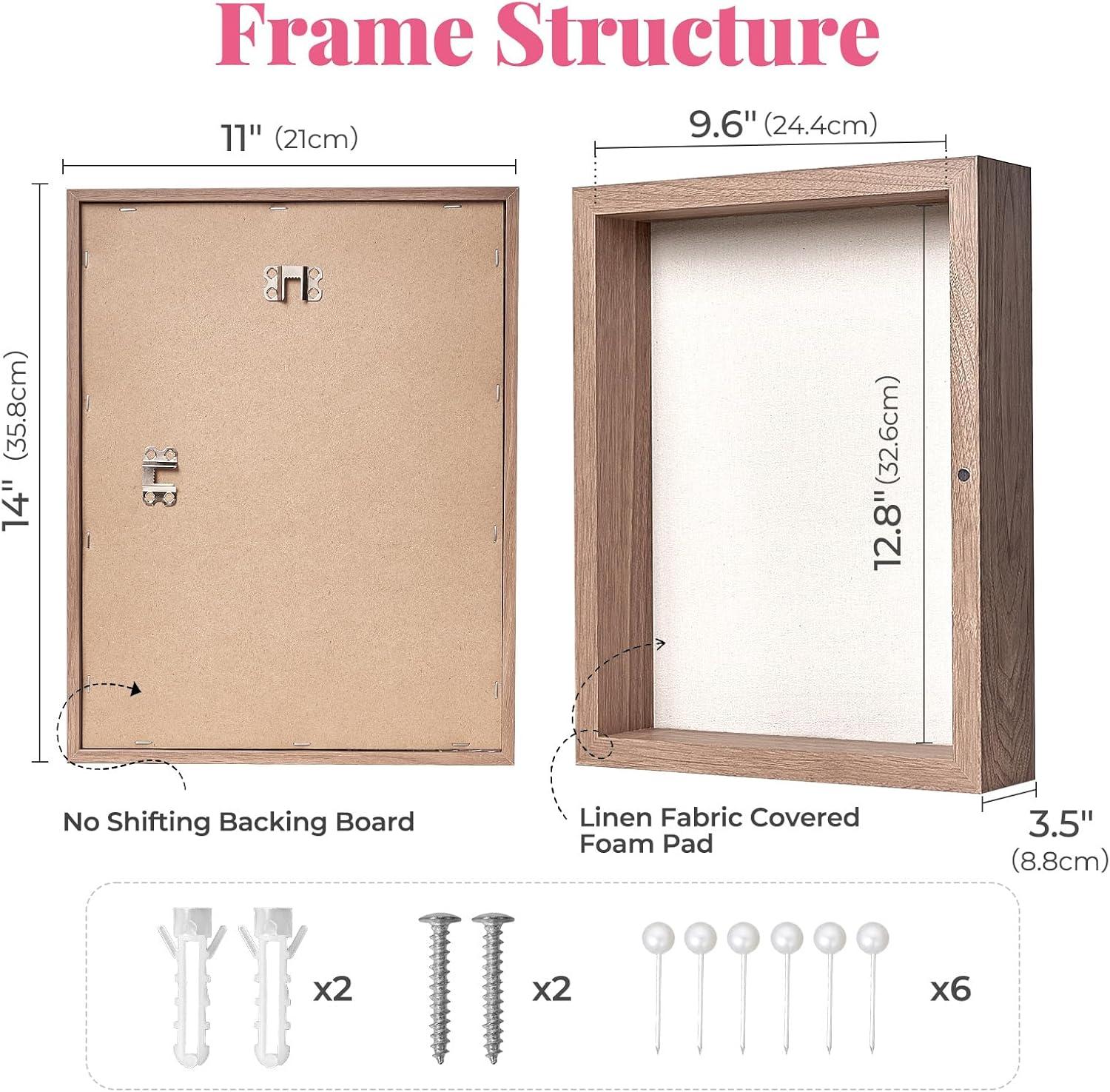 HOUSE DAY 11x14 Shadow Box Frame, Front Open Magnetic Shadow Boxes Display Cases with Linen Back, Pins, for Photos or 3D Itmes Under 9x12, Tabletop or Wall Mount Display Case for Memorabilia, Black(Walnut)
