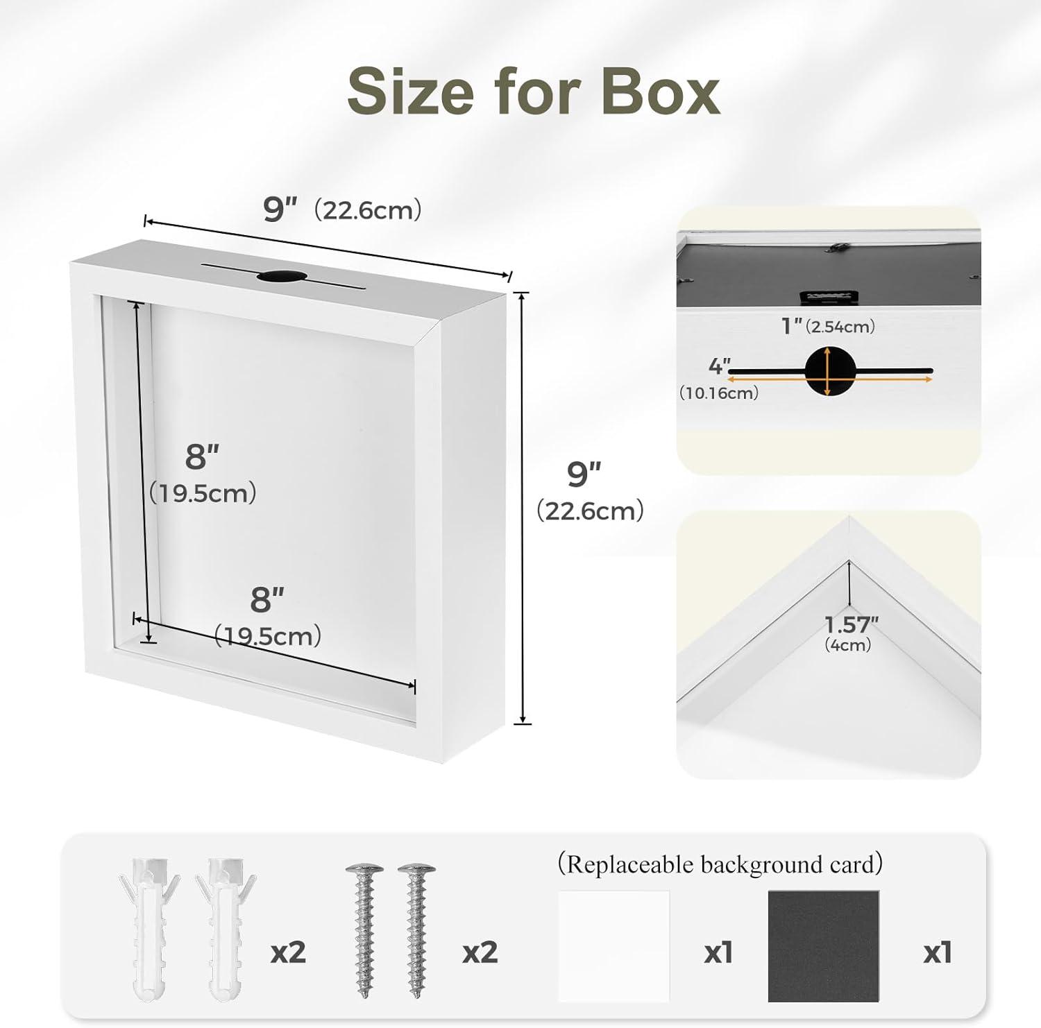 Customizable Display: Includes 2 replaceable backgrounds w/ticket shadow box to match your room decor or mood. Overall size for shadow box with slot on top is 9x9x2.36 inch, and its inner size is 8x8x1.57 inch
