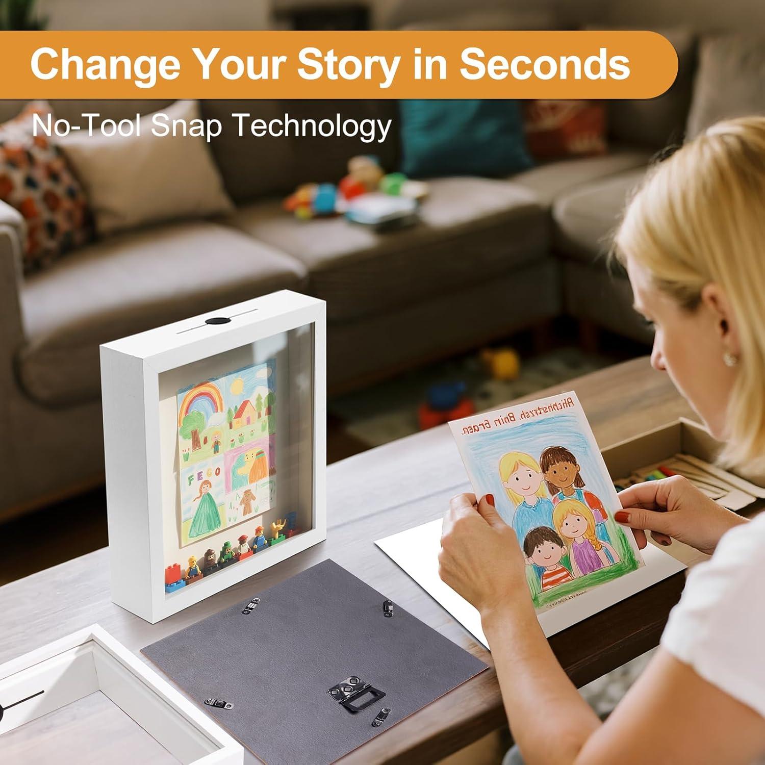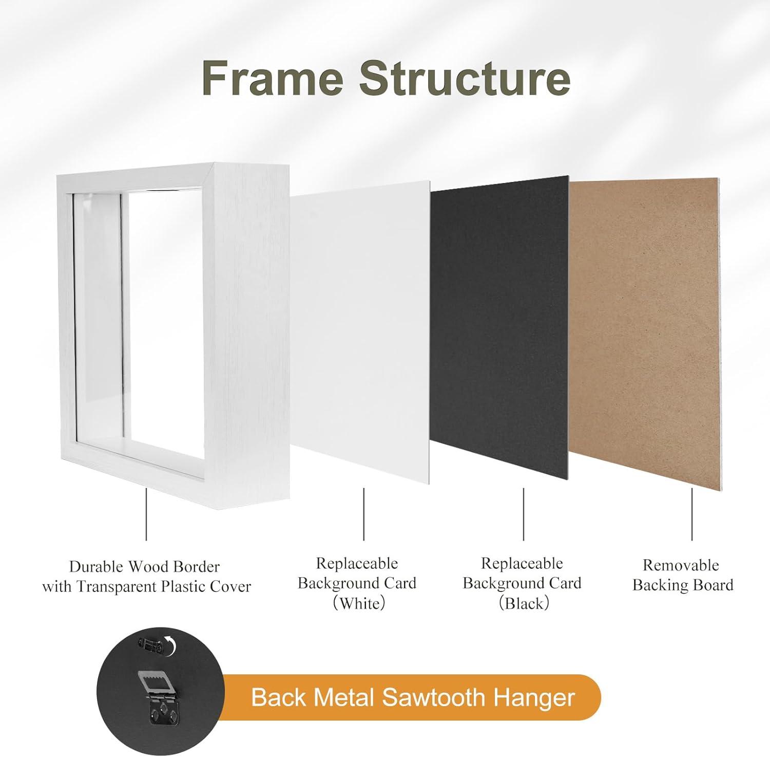 HOUSE DAY 8x8 Travel Shadow Box with Slot, Top Loading Adventure Archive Boxes for Memories, Life in A Box Travel Frame for Photos, Collectibles, Sports Card, Wine Corks, Black(White)