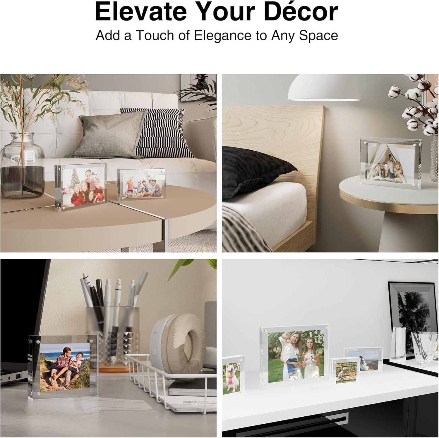 HOUSE DAY Acrylic Picture Frames 5×7, 20 Pack Magnetic 5×7 Picture Frame, Double Sided Clear 5 x 7 Photo Frame with Microfiber Cloth, Frameless FreeStanding 5 x7 Frame Gift for Desktop Display(4×6″(2 Pack))