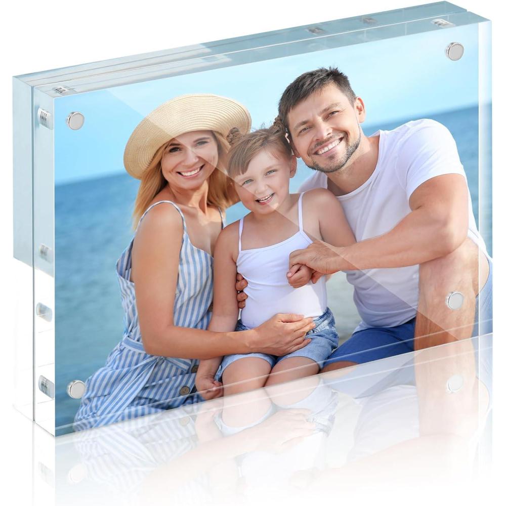 House Day Acrylic Picture Frames 5×7, Strong Magnetic Photo Frame, Double Sided Clear Photo Frames with Microfiber Cloth, Frameless Standing Desktop Frame for Home, Office, Events (20 Pack, Gift Ready) Premium 5×7 Acrylic Frame – Museum-Grade Clarity & Protection, 98% light transmission preserves color accuracy like professional photo paper displays. Ultra-durable, museum-grade acrylic prevents the photos fading and yellowing. Thicker 10mm + 10mm frame panels resist the warping and scratches, ensuring crystal-clear clarity for decades. Sturdy freestanding build, this acrylic picture frame can hold 5×7 or smaller pictures. ” Instant Magnetic Closure – Powerful magnets create a secure, instant attachment – simply drop photos to lock them in place. Easily flip pages to showcase front/back content, perfect for sharing multi-sided mementos or rotating collections. Durable magnetic closure maintains secure hold without adhesive damage to delicate items. No clips, glue, or tools require, this magnetic picture frame is perfect for quick picture updates or rotating collections. ” “360° Flexible Display Options – Display photos horizontally or vertically for perfect framing every time. Switch between full-screen immersion or floating presentation modes to match any room aesthetic.These clear photo frames with double-sided see-through frames allow you to view from both sides and can be used as single or double-sided frames. Put precious moments photos such as birthdays, graduations, weddings, etc. in our acrylic photo frames to cherish every memory. ” Self-Standing Stability -Reinforced acrylic frame withstands 5X normal impact force. No assembly required – stable base design holds 1.5 lbs securely without tipping or wobbling. Thick 20mm profile creates minimalist elegance while maintaining structural integrity (desktop-only, not for hanging). Compact yet versatile design adapts to pictures, handicrafts, certificates, commemorative coins, dried flowers, stamps, memos, concert tickets, etc. Perfect Gift for All Occasions-Curate collections of photos, documents, artwork, or memorabilia using adjustable dividers. Dust-resistant seal maintains pristine displays for decades. These standing desk frames are perfect gift solution for Birthday, Housewarming, Christmas, Thanksgiving, New Year, Halloween, Father's Day, Mother's Day, Valentine's Day, corporate branding, family members and any other memorable events.