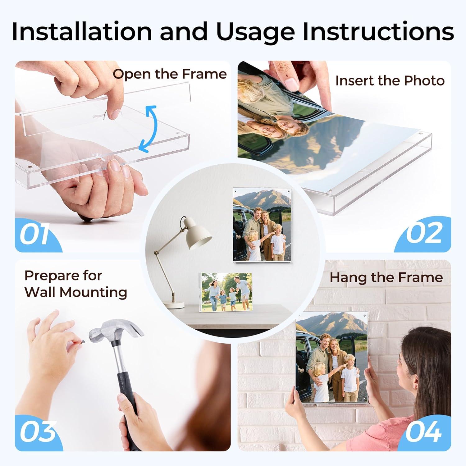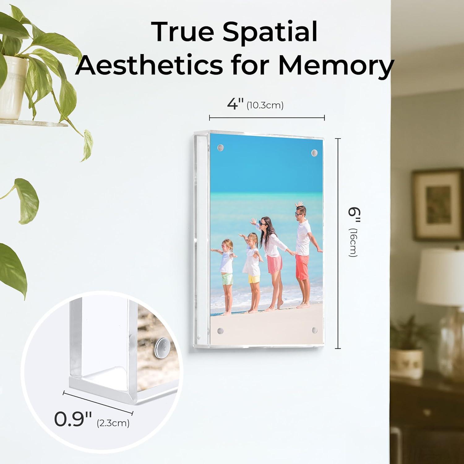 360° Flexible Display Options – Display photos horizontally or vertically for perfect framing every time. Switch between full-screen immersion or floating presentation modes to match any room aesthetic. Put precious moments photos such as birthdays, graduations, weddings, etc. in our acrylic photo frames to cherish every memory.