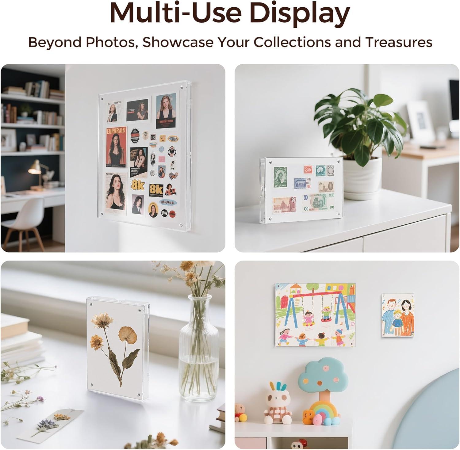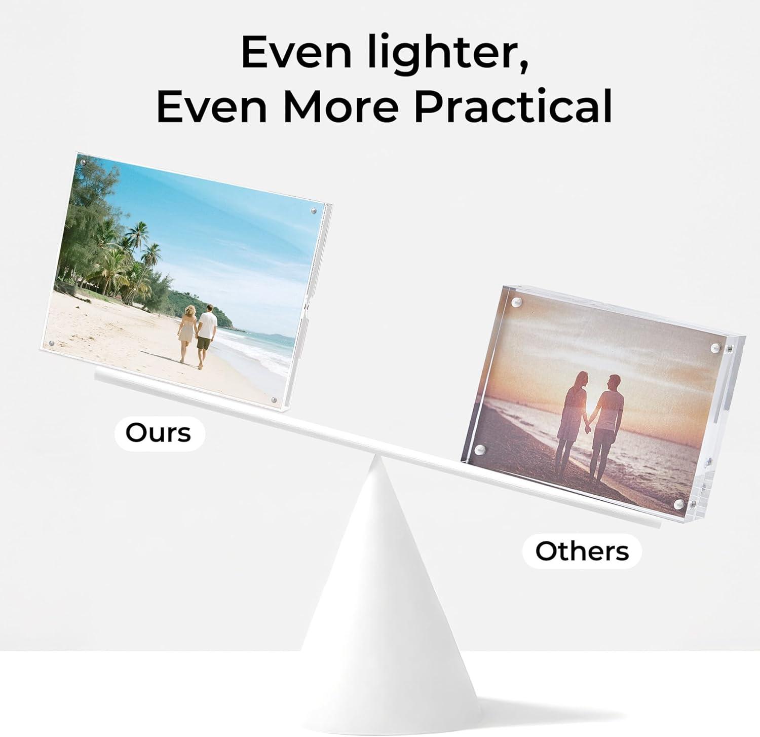 Premium 5×7 Acrylic Frame – Museum-Grade Clarity & Protection, 98% light transmission preserves color accuracy like professional photo paper displays. Ultra-durable, museum-grade acrylic prevents the photos fading and yellowing. Thicker frame panels resist the warping and scratches, ensuring crystal-clear clarity for decades. Sturdy freestanding build, this acrylic picture frame can hold 5×7 or smaller pictures.