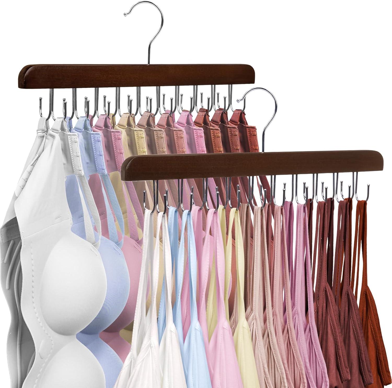 High Capacity & Reliable Support- Equipped with over 20 robust hooks, this bra hanger for closet and belt hook offers exceptional strength; Supporting multiple items without bending; Holding up to 20 bras or tank tops per unit; Serves as a belts rack for closet and tie racks for men closet