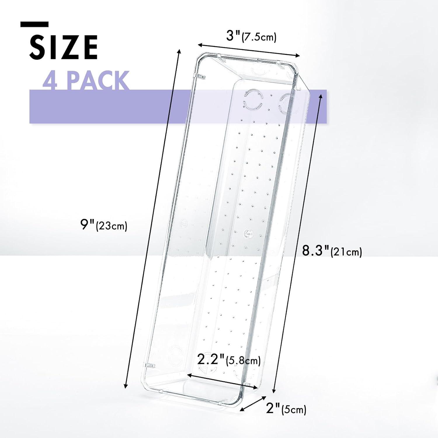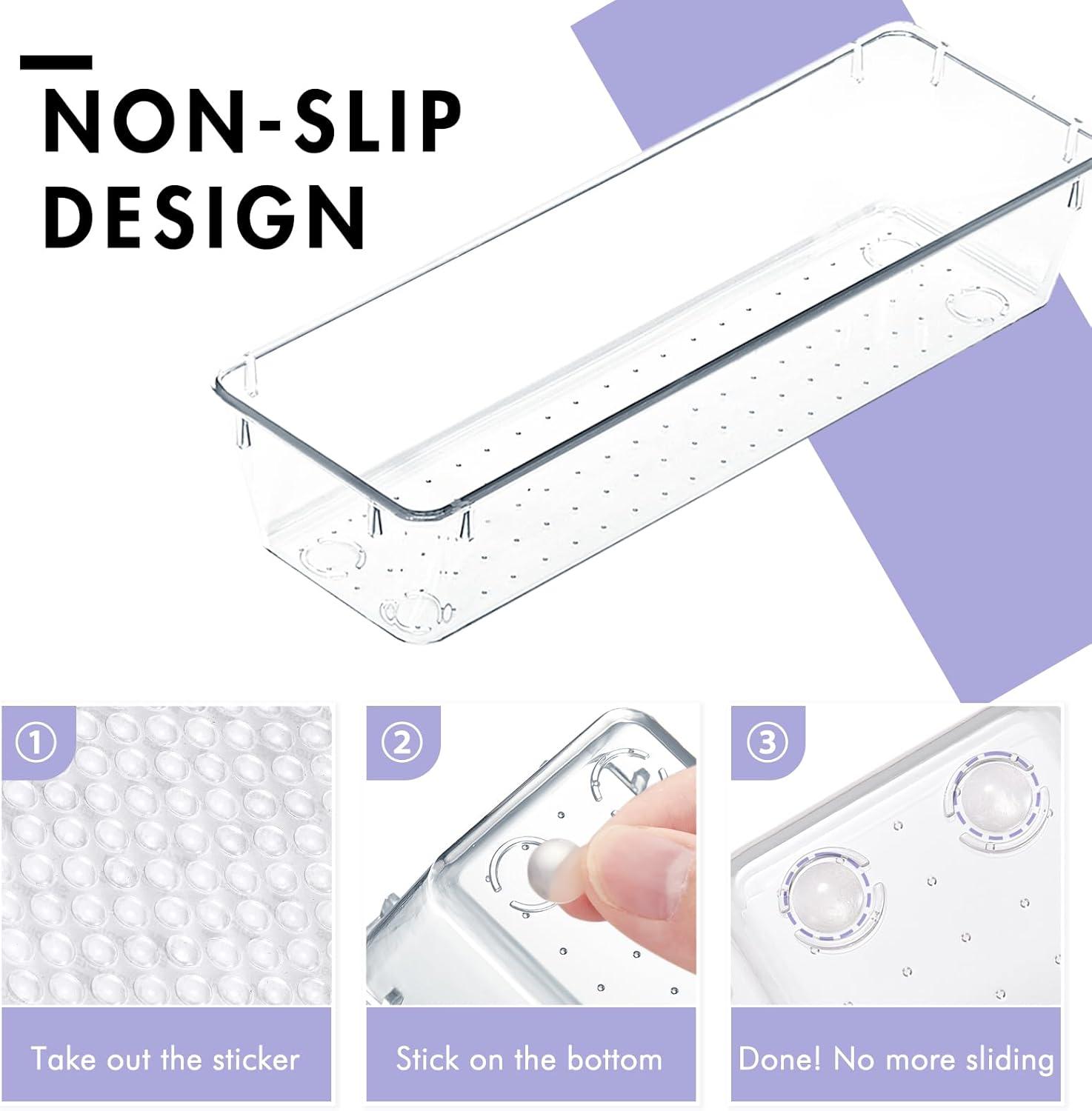 HOUSE DAY Desk Drawer Organizer Bins 8 PCS, 9*3*2″ Clear Drawer Organizers with Silicone Pads, Vanity Organizers and Storage, Non Slip Plastic Drawer Organizer for Makeup, Bathroom, Kitchen, Office(4 Pack -9x3x2”)