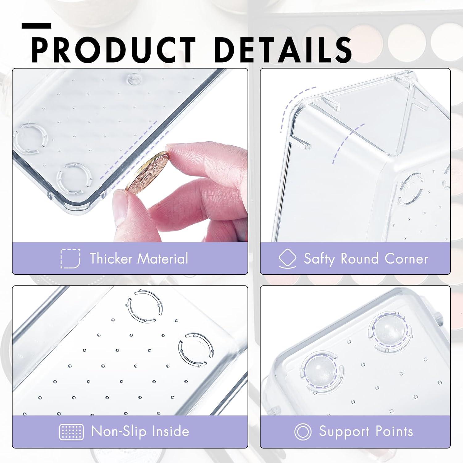 Drawer Organization And Storage: Our vanity organizer has more pieces of large drawer organizer bins than others, provide ample space for bulkier items. This set of acrylic organizers comes in multiple sizes and quantities, allow you to create your own personalized storage solutions that fit your unique needs.