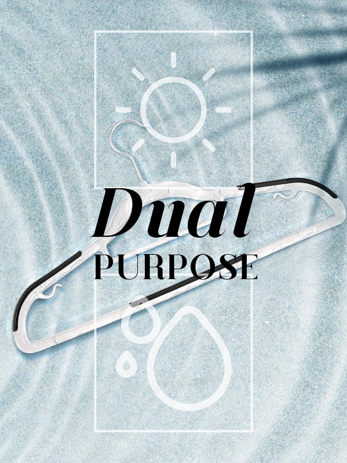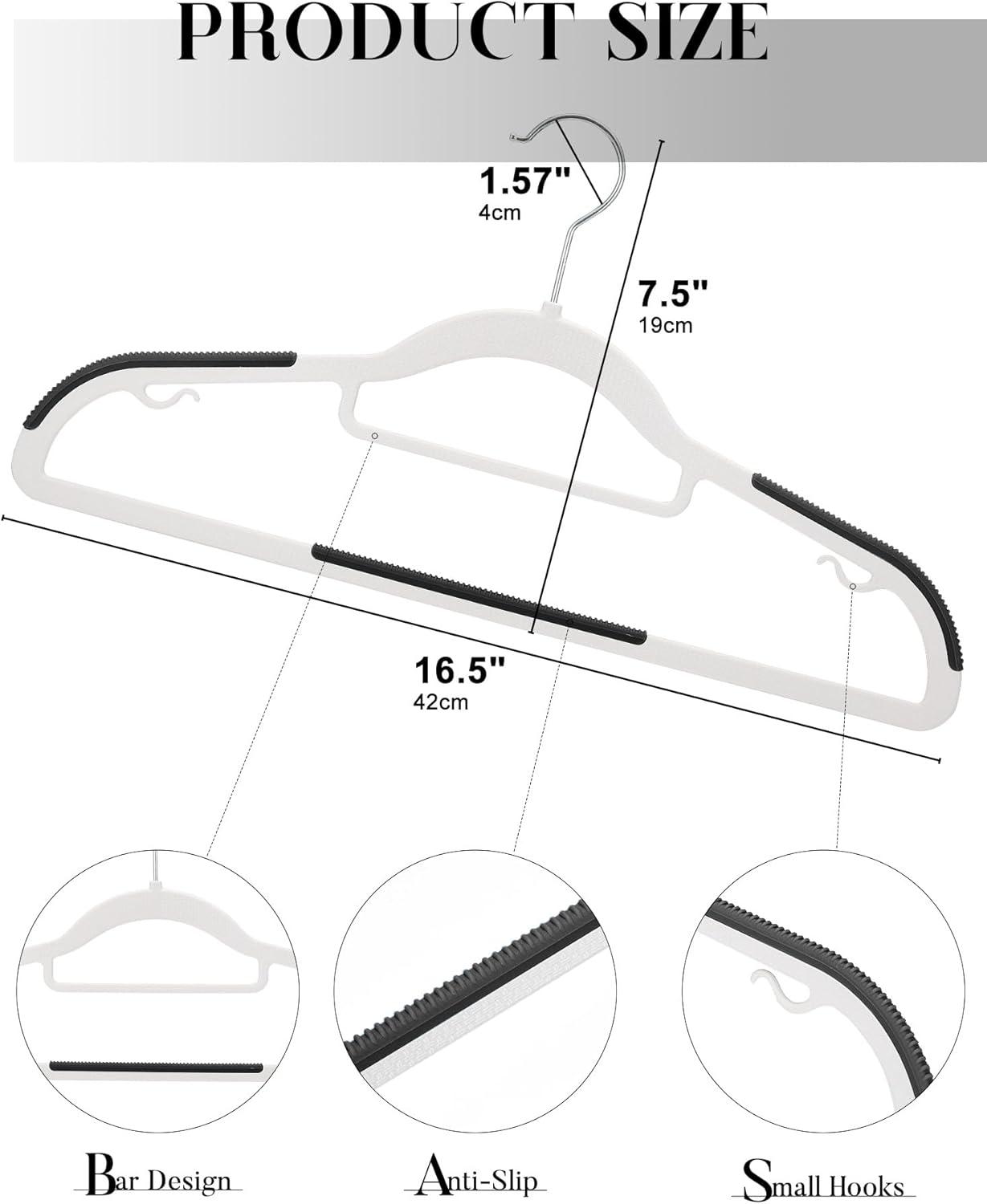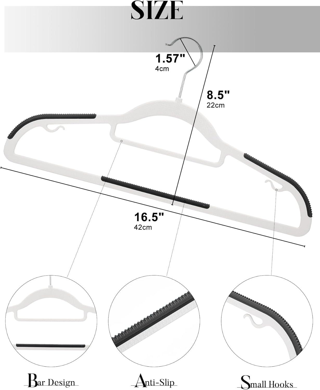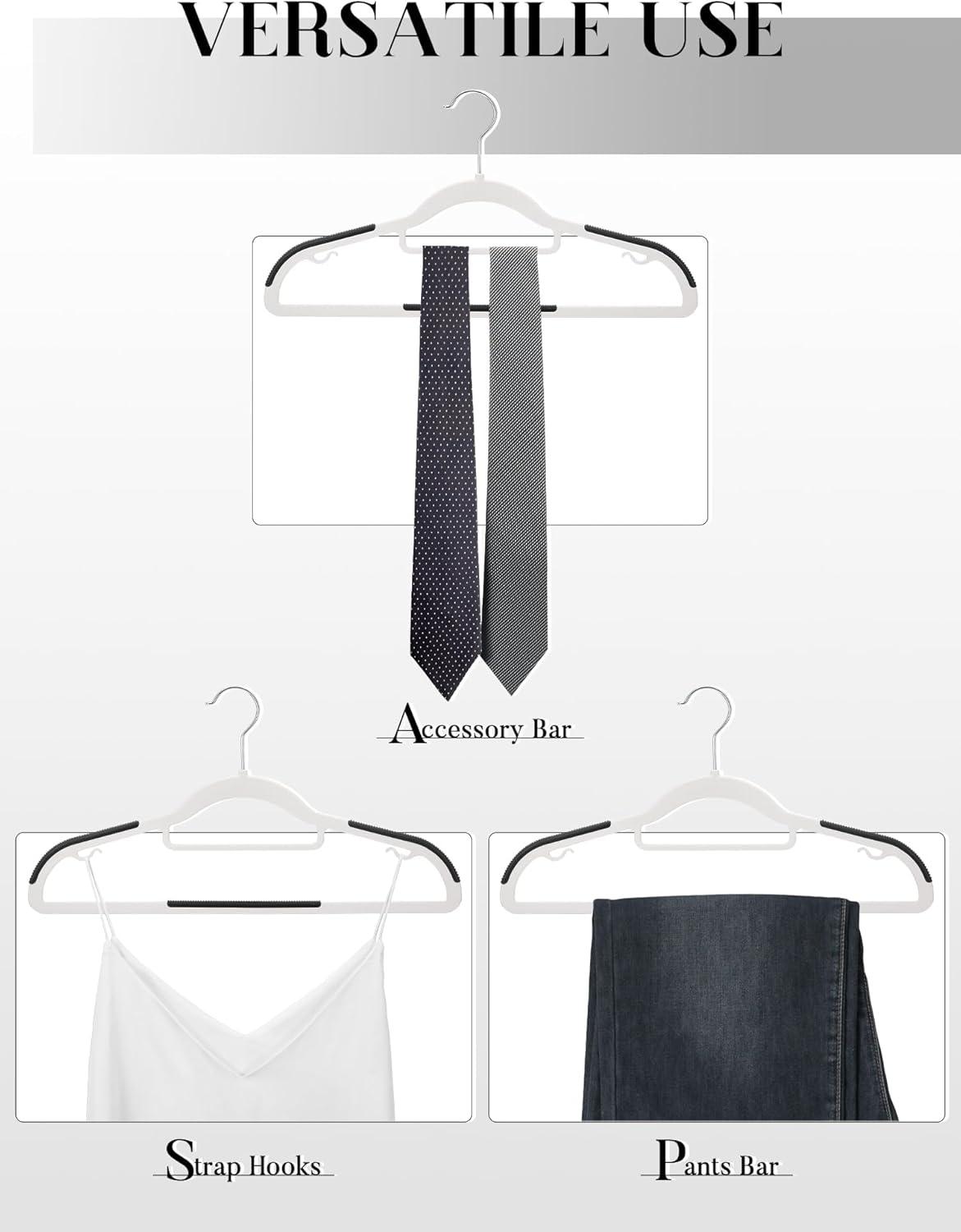 Versatile Clothes Hangers Plastic: These heavy duty hangers for clothes are designed with extra bars to holding accessories like belts, scarves, and ties. The crossbars are tailored for hanging pants, preventing creasing and marks. Moreover, the small hooks on the dress hangers are perfect for garments with shoulder straps. Their remarkable ability to handle multiple items simultaneously makes these thin hangers ideal choice for both closet organizers and storage enthusiasts.