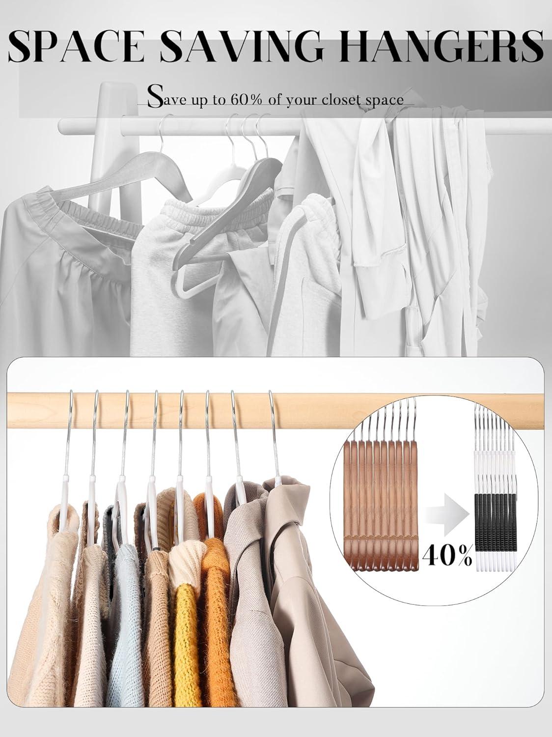 Space Saving Hangers For Clothes: The sleek design of these slim hangers optimizes your wardrobe space, enabling you to hang more clothes in the same area-especially perfect for compact closets or limited storage spaces. The 360-degree rotating hook of the dorm hangers ensures easy access to your desired garment without the need to remove the adult hangers, making them an excellent solution for maximizing storage efficiency.