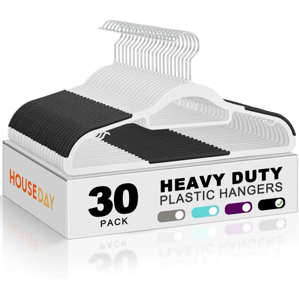 Be the first to review “HOUSE DAY Plastic Hangers 100 Pack, White Clothes Hangers with Non Slip Purple TPR Grip, Heavy Duty Coat Hanger with 360º Swivel Hook, Slim Hanger Space Saving for Closet, Ideal for Shirt, Suit, Pant(White+black)”