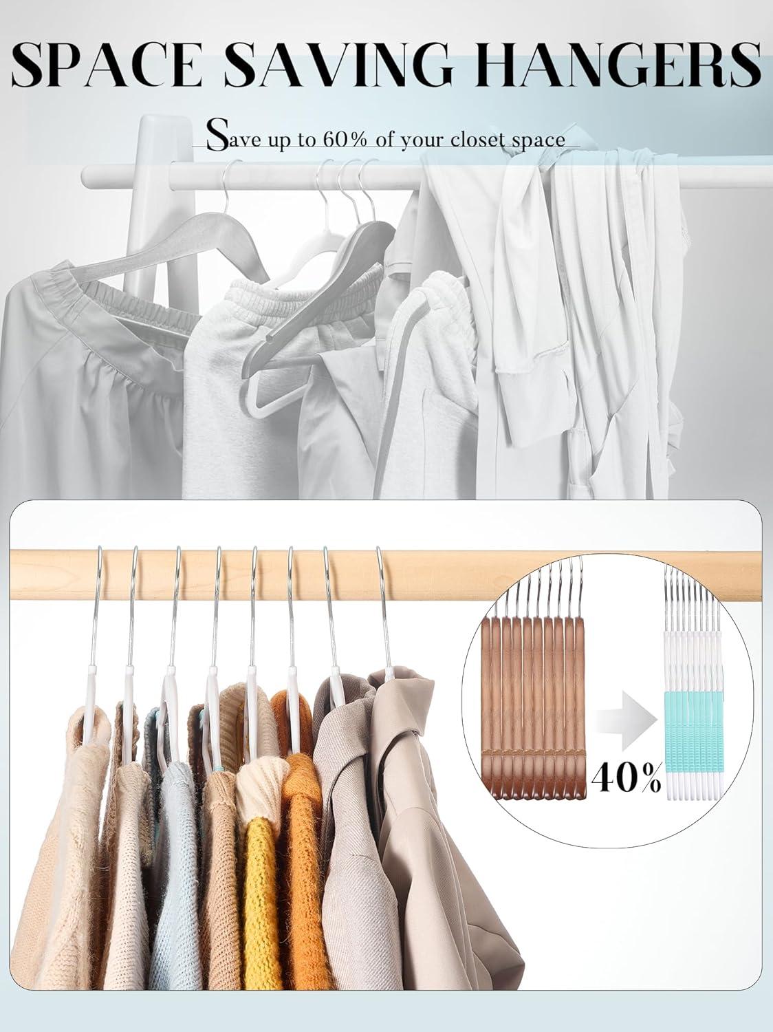 Space Saving Hangers For Clothes: The sleek design of these slim hangers optimizes your wardrobe space, enabling you to hang more clothes in the same area-especially perfect for compact closets or limited storage spaces. The 360-degree rotating hook of the dorm hangers ensures easy access to your desired garment without the need to remove the adult hangers, making them an excellent solution for maximizing storage efficiency.