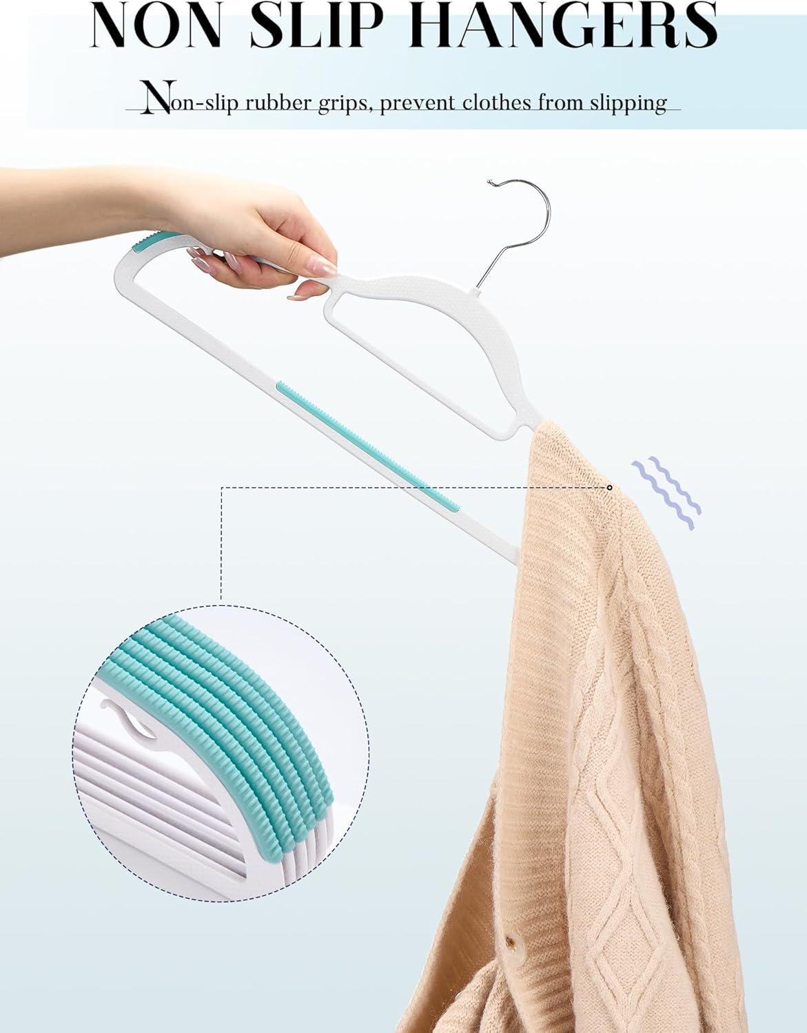 HOUSE DAY Plastic Hangers 100 Pack, White Clothes Hangers with Non Slip Purple TPR Grip, Heavy Duty Coat Hanger with 360º Swivel Hook, Slim Hanger Space Saving for Closet, Ideal for Shirt, Suit, Pant(White+blue)