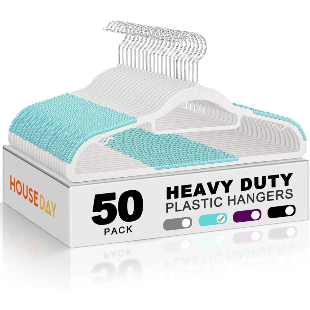 Be the first to review “HOUSE DAY Plastic Hangers 100 Pack, White Clothes Hangers with Non Slip Purple TPR Grip, Heavy Duty Coat Hanger with 360º Swivel Hook, Slim Hanger Space Saving for Closet, Ideal for Shirt, Suit, Pant(White+blue)”