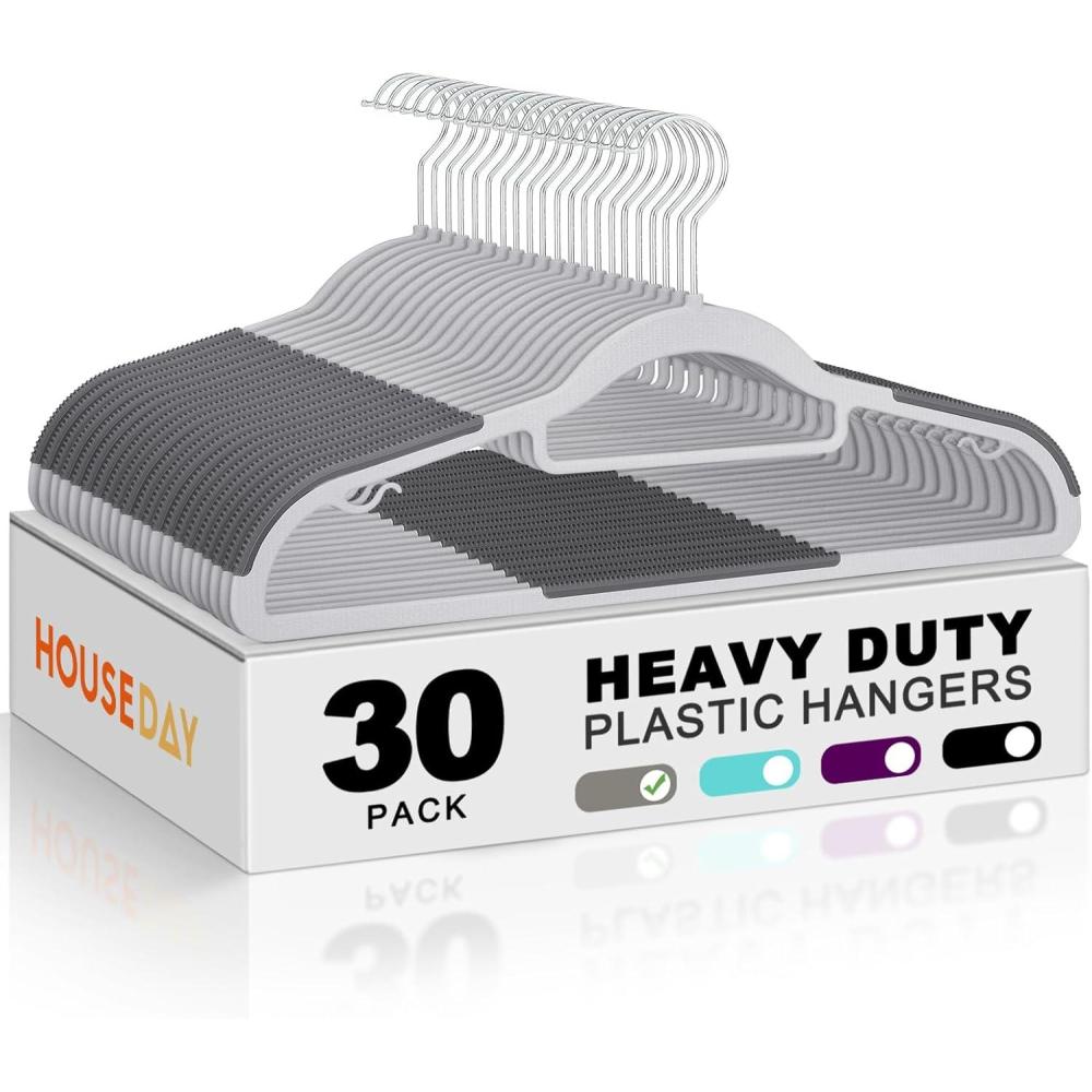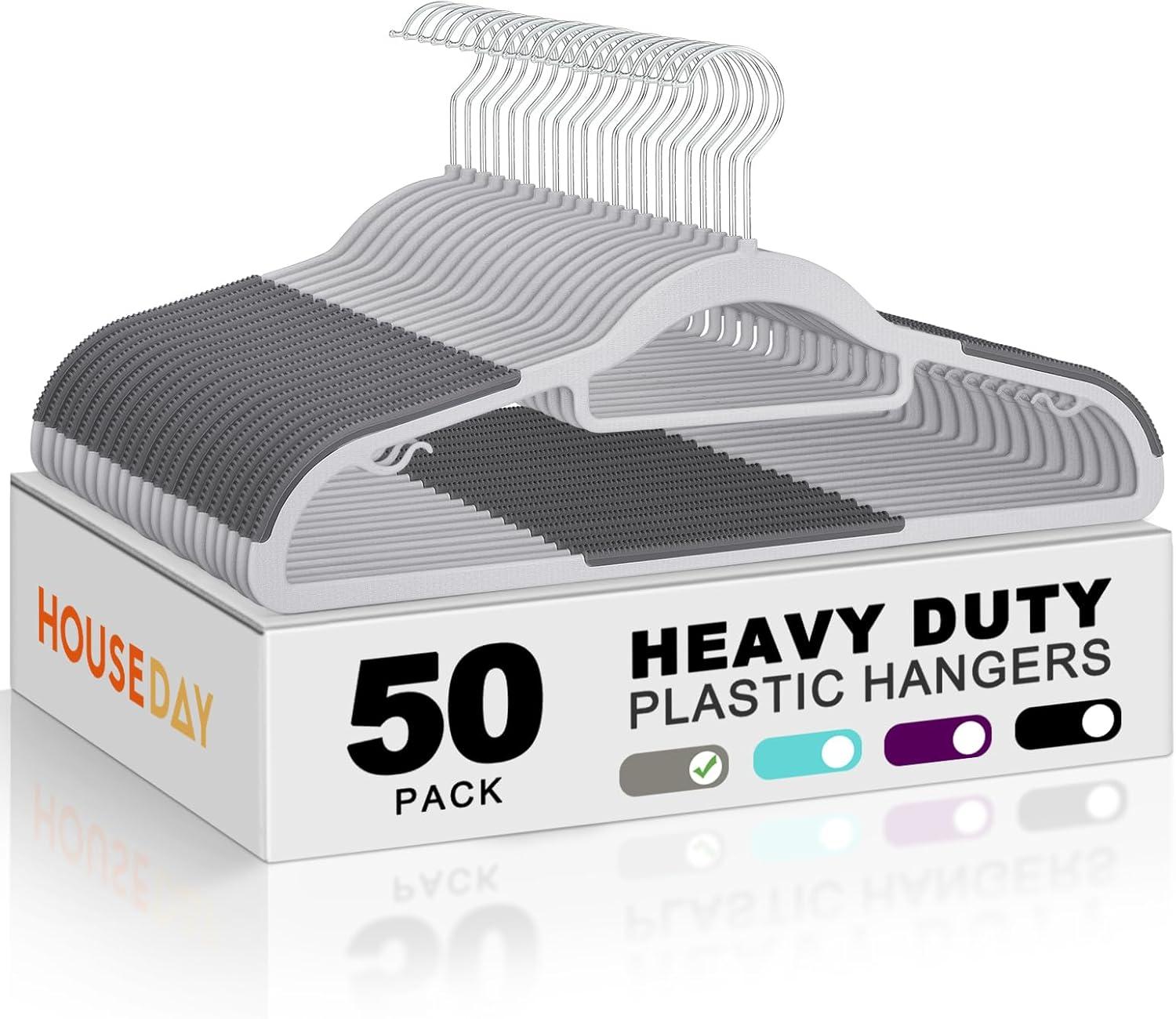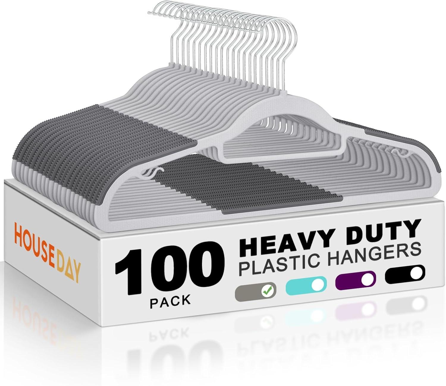 Be the first to review “HOUSE DAY Plastic Hangers 100 Pack, White Clothes Hangers with Non Slip Purple TPR Grip, Heavy Duty Coat Hanger with 360º Swivel Hook, Slim Hanger Space Saving for Closet, Ideal for Shirt, Suit, Pant(Gray + Dark Gray)”