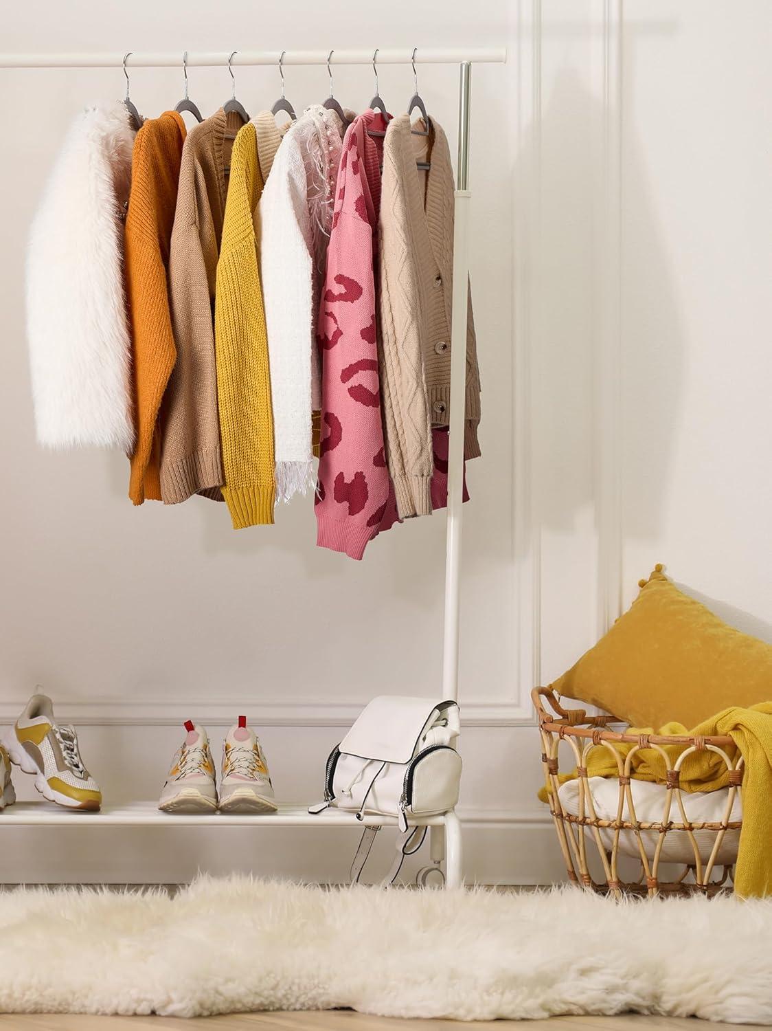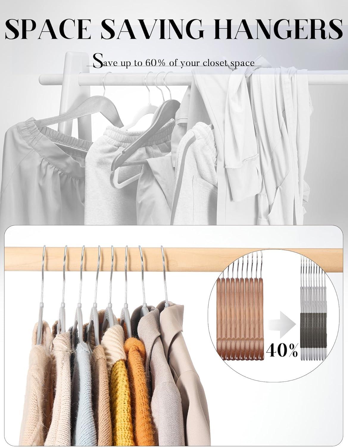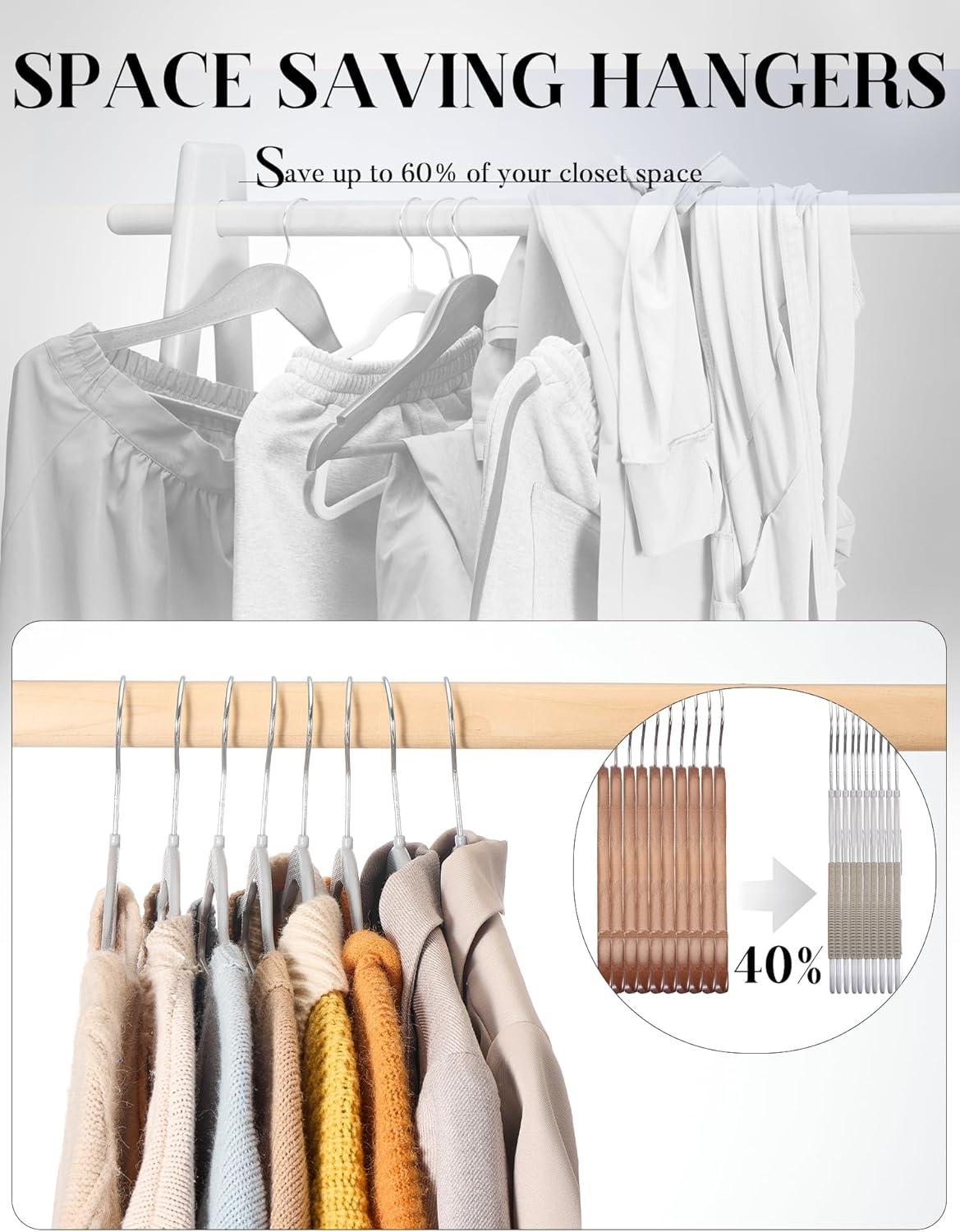 Space Saving Hangers For Clothes: The sleek design of these slim hangers optimizes your wardrobe space, enabling you to hang more clothes in the same area-especially perfect for compact closets or limited storage spaces. The 360-degree rotating hook of the dorm hangers ensures easy access to your desired garment without the need to remove the adult hangers, making them an excellent solution for maximizing storage efficiency.