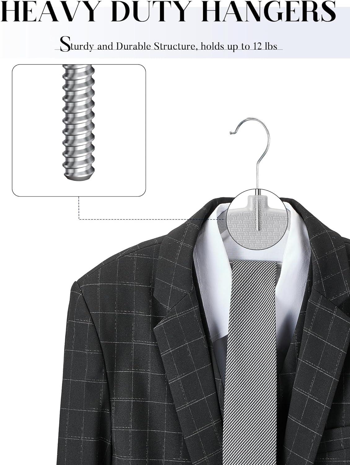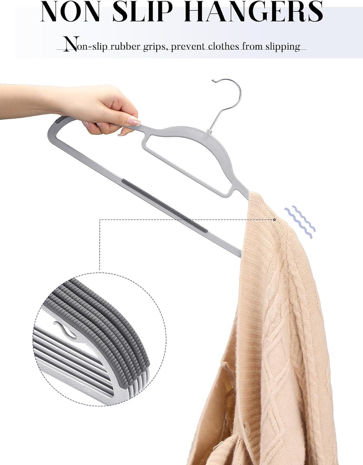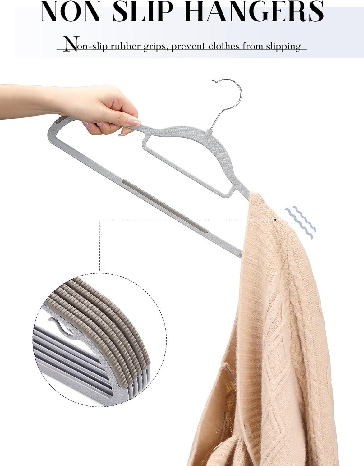 Premium Clothes Hangers 50 Pack: Our coat hangers for closet seamlessly blend functionality with style. Each no slip hangers' surface is thoughtfully designed to eliminate sharp edges that could potentially snag or tear your clothing. With curved shoulders that mimic the natural shape of human shoulders, these hangers prevent fabric from stretching, creasing, or developing indentations, ensuring your clothing remains in pristine condition.