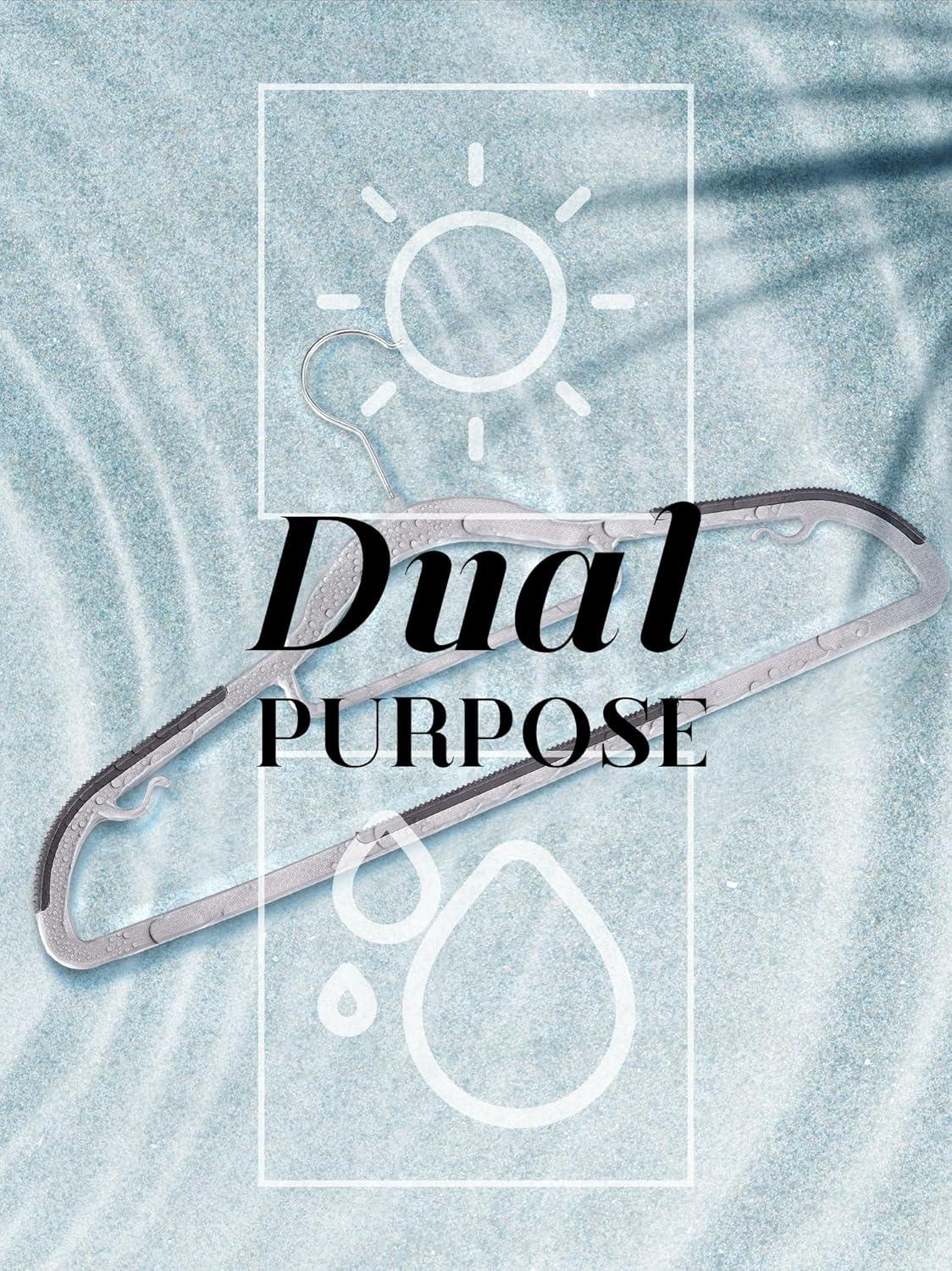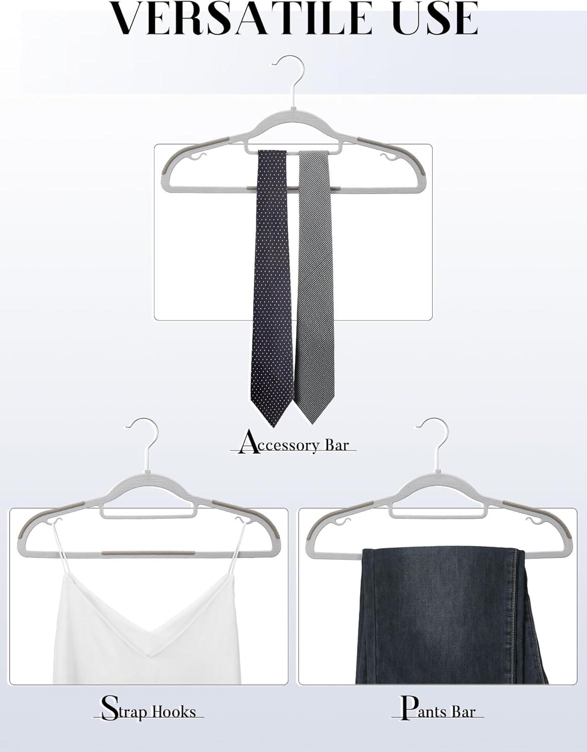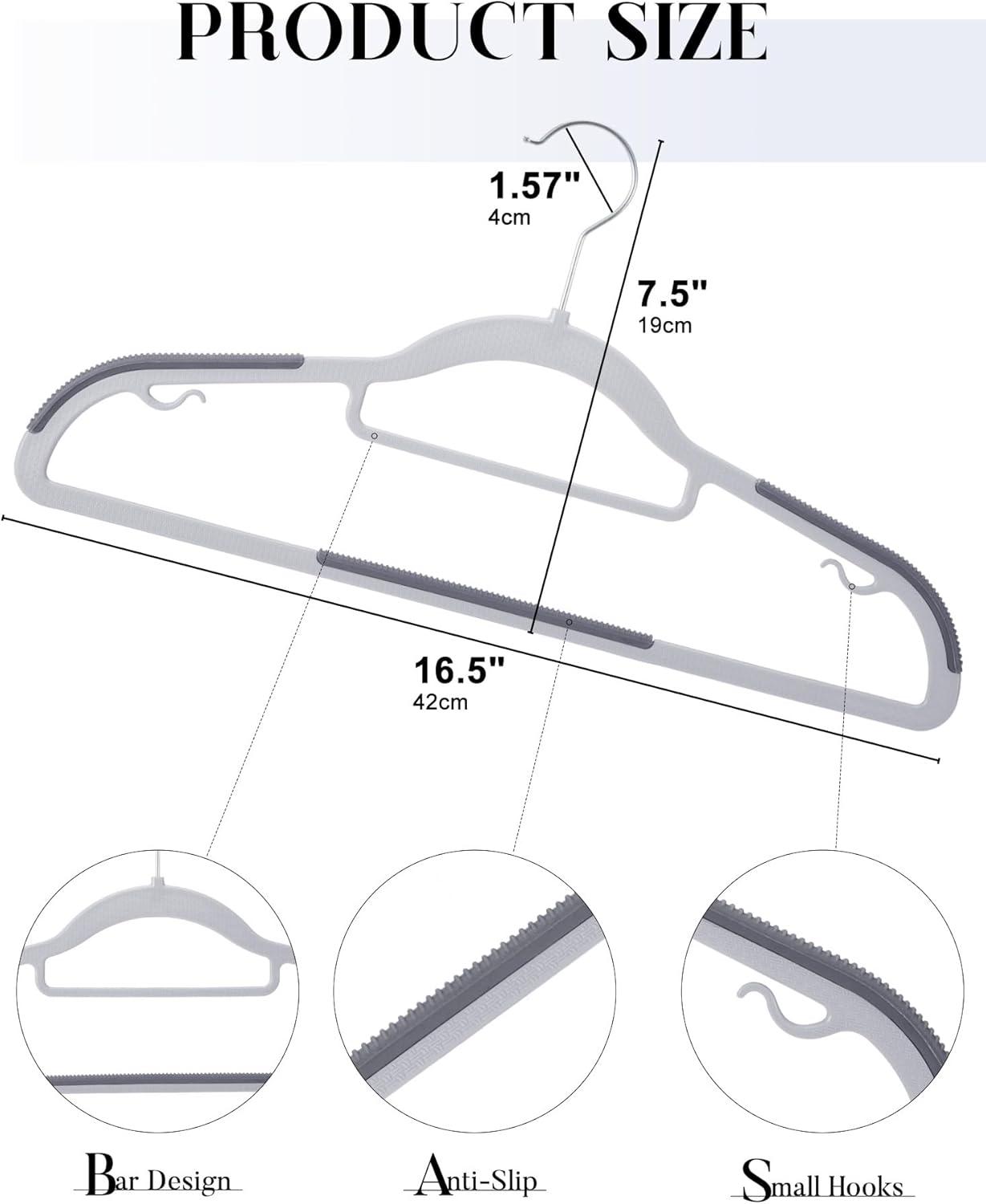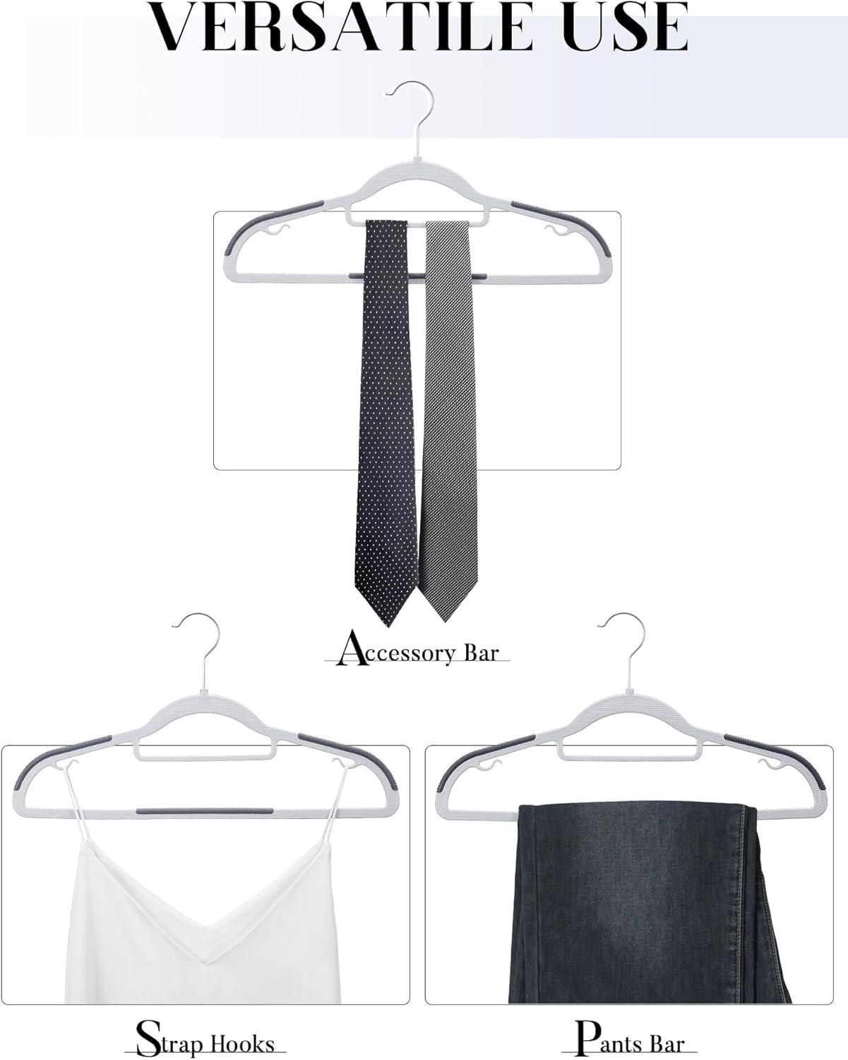 Versatile Clothes Hangers Plastic: These heavy duty hangers for clothes are designed with extra bars to holding accessories like belts, scarves, and ties. The crossbars are tailored for hanging pants, preventing creasing and marks. Moreover, the small hooks on the dress hangers are perfect for garments with shoulder straps. Their remarkable ability to handle multiple items simultaneously makes these thin hangers ideal choice for both closet organizers and storage enthusiasts.