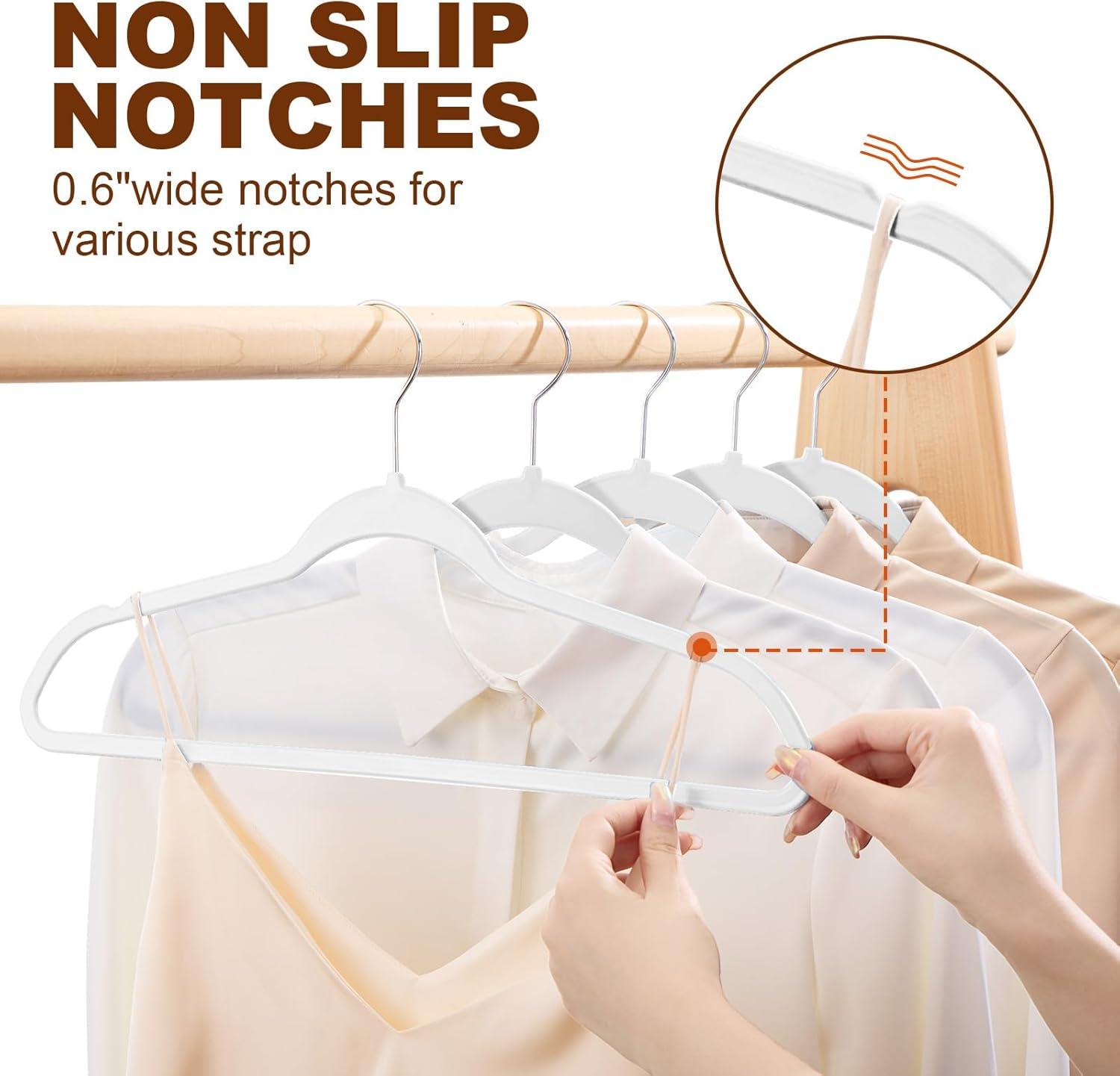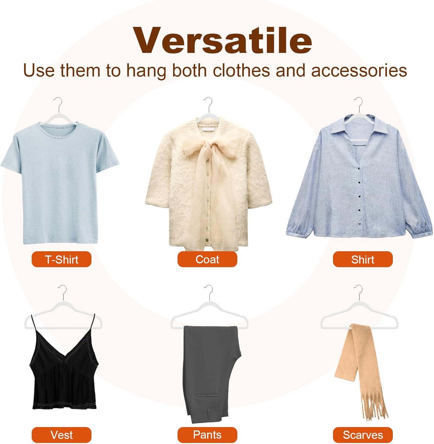 【Space-Saving Design – Maximize Your Wardrobe Space】- With 0.2inch in thickness of each hanger, their sleek and slender profile is designed while providing great support for your garments. Make the most of your closet real estate by switching to hangers that optimize your storage capacity. With their slim design, you'll find that you have more room to accommodate a diverse range of clothing items without compromising on accessibility or aesthetics