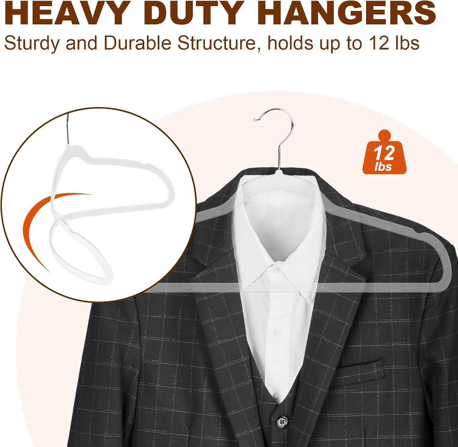 【Durable & Heavy Duty – Save Your Time & Energy for Changing】- It features the epitome of durability. These clothes hangers are engineered to withstand the weight of your coats, jackets, and even heavier garments with ease(up to 10LBS). Say goodbye to flimsy hangers that bend or break under pressure;Our heavy hangers maintain their shape and strength over time. Invest in thick hangers that match the resilience of your lifestyle